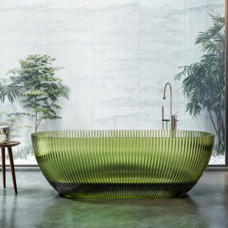 Colorful Transparent Resin Bathtubs Soaking Artificial Stone Freestanding Whirlpool Bathtub
