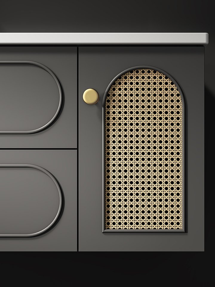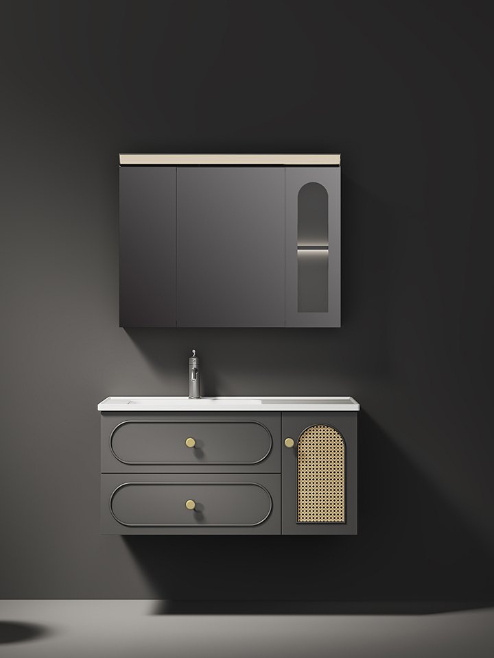 Modern Design New Arrival Rattan Doors Bathroom Vanities Wall Mounted with Smart LED Mirror Cabinet