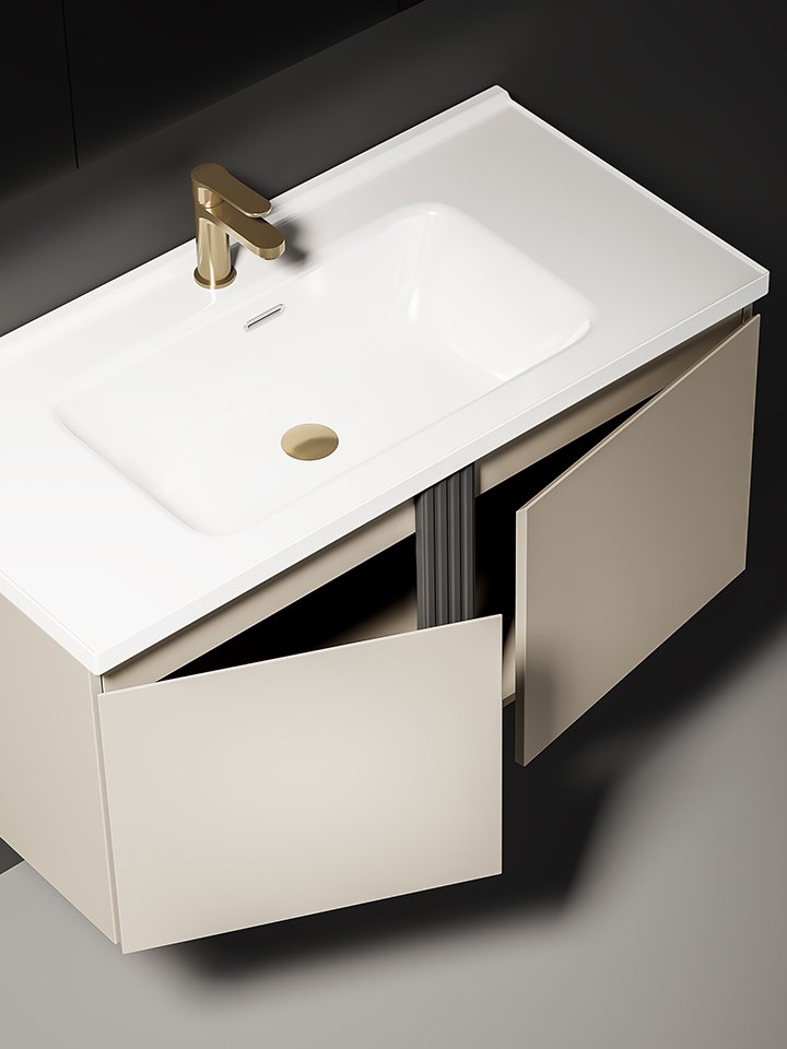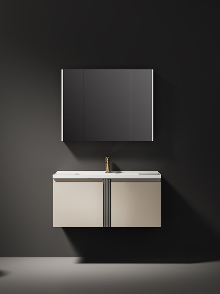 Plywood Wall-mounted Bathroom Cabinet Luxury Ceramic Basin and LED Mirror Bathroom Cabinet