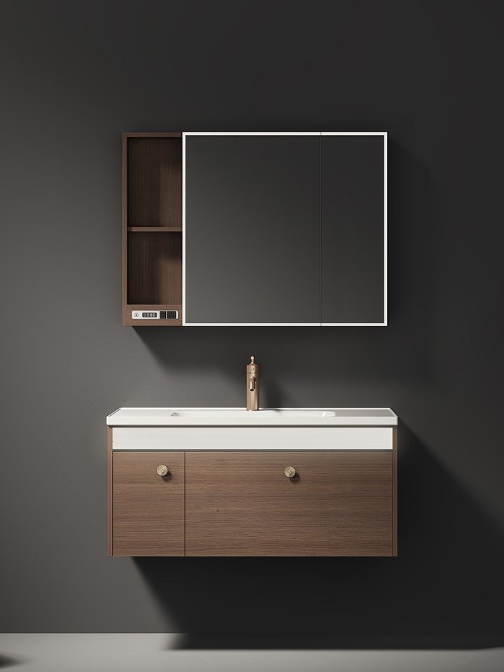 Vintage Style Smart Washstand Basin Bathroom Cabinet Set New Style Integrated Ceramic Basin Solid Wood